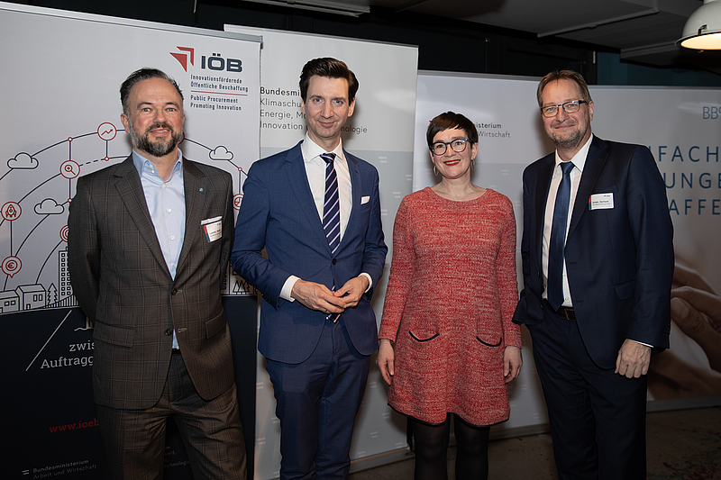 Von Seiten der initiierenden Bundesministerien dem Bundesministerium für Klimaschutz, Umwelt, Energie, Mobilität, Innovation und Technologie (BMK) und dem Bundesministerium für Arbeit und Wirtschaft (BMAW) durften wir Sektionschefin Henriette Spyra, Sektionsleiter Florian Frauscher, Michael Brugger und Bernd Zimmer begrüßen. Sie machten deutlich, dass IÖB und die innovativen Lösungen von österreichischen Unternehmerinnen und Unternehmern auch zukünftig wichtige Hebel mit Wirkung für die österreichische Verwaltung sind.